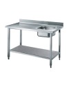 Tavolo con vasca saldata in acciaio AISI , robusto e igienico, ideale per ambienti commerciali o industriali. Design funzionale con materiali resistenti e duraturi.